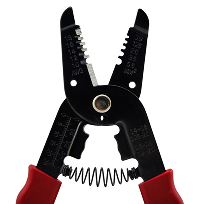 Такой стриппер имеет несколько (обычно до семи) фиксированных зазоров, которые позволяют быстро зачистить провод сечением от 0,25 до 2,5 мм. Из дополнительных возможностей наиболее полезны ножницы по кабелю и функция обжатия наконечников.