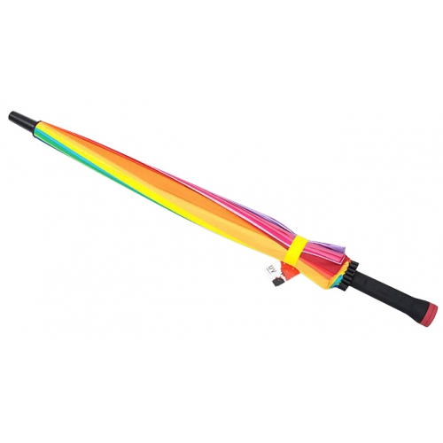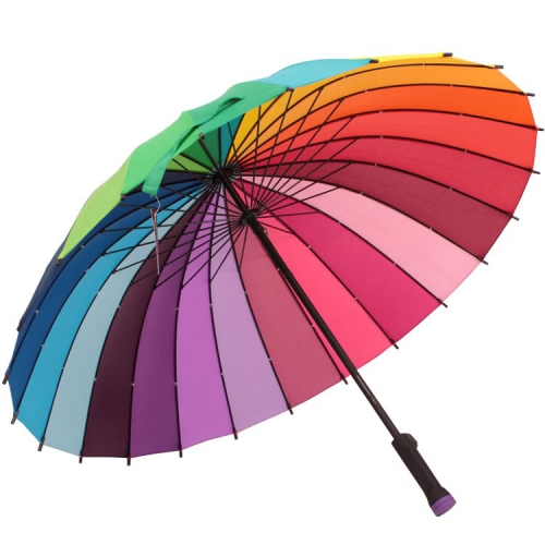 Купив великолепный зонт, вы приручите радугу, ведь стоит вам нажать на кнопку и она распустится у вас над головой. 24 ярких полосы, укрепленные между 24 спицами зонта, раскрасят серые будни и создадут праздничное настроение не только обладателю зонта, но и проходящим мимо людям.