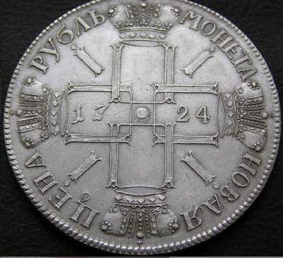 Монета 1 рубль 1724 Петр 1