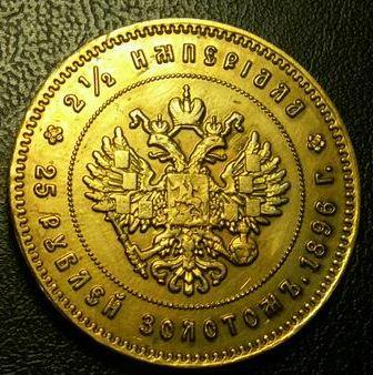 Монета 25 рублей золотом 1896 года 2 1/2 империала