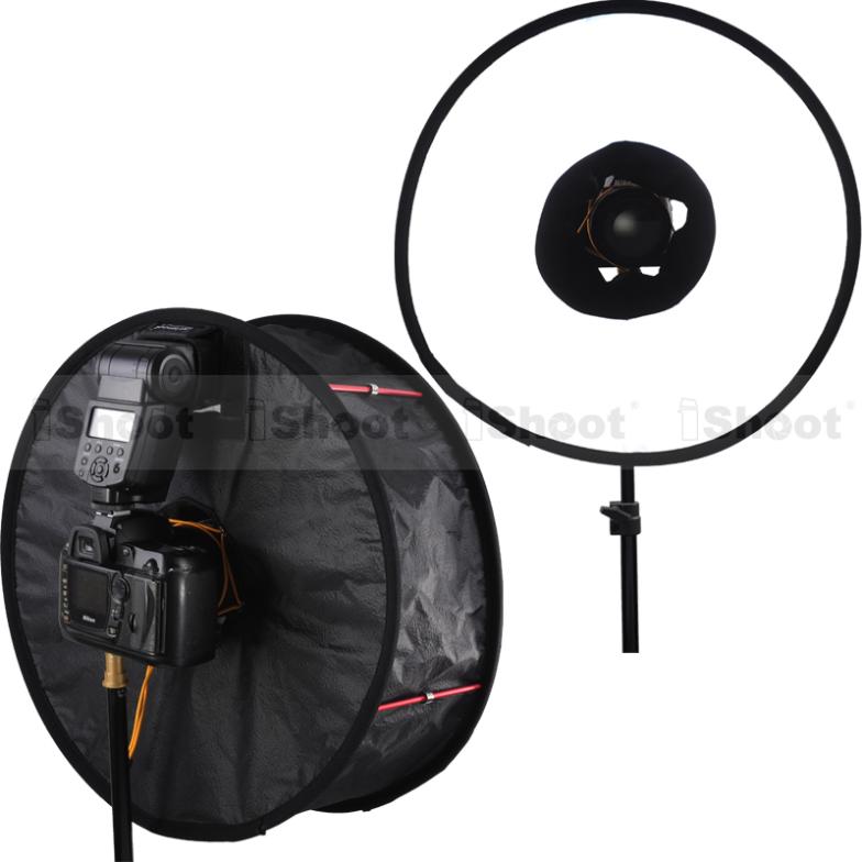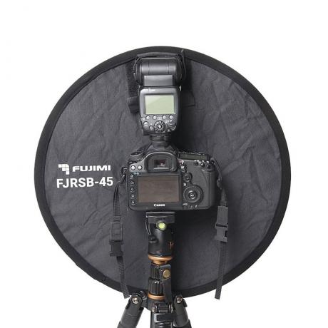 Кольцевой софтбокс Fujimi FJSRB-45 предназначен для накамерных вспышек и объективов диаметром до 10 см, обеспечивая уникальное сочетание мобильности и качества рассеивания на уровне студийных моделей.
