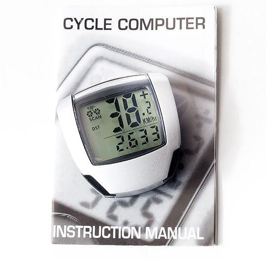· SPD – (SPeeD) – Текущая скорость (до 99,9 км/час) · ODO – (ODOmeter) – Общий пробег велосипеда (отсчитывается с момента установки компьютера на велосипед) – сумма всех расстояний, преодоленных на велосипеде (до 99999 км) · DST – (DiSTance) – Дистанция, расстояние, пройденное за текущую поездку (в любой момент это показание можно обнулить) (от 0 до 9999 км) · MXS (MaXSpeed) – Максимальная зафиксированная скорость за текущую поездку · AVS – (Average Speed) – Средняя скорость за текущую поездку · TM – (Trip tiMe) – Общая продолжительность текущей поездки (при остановках отсчет времени приостанавливается, т.е. учитывается только время, когда вы двигаетесь) · CLK – (CLocK) – Часы, текущее время (12 ч / 24 ч) · Scan – Режим, при котором последовательно отображаются следующие показатели: DST, MXS, AVS и TM (каждая высвечивается в течение 4 сек) “+” “-” SPEED COMPARATOR – Значок, индикатор указывающий на то, ниже или выше ваша текущая скорость, чем средняя за поездку · Freeze Frame Memory – Заморозка текущих показаний компьютера Инструкция по установке и настройке велокомпьютера Установка размера колеса «2060» появится на экране, когда батарейка будет вставлена, первая цифра будет мигать, выбрать правильную окружность колеса из таблицы. Нажмите ЛЕВУЮ кнопку чтобы выбрать значение, затем ПРАВУЮ чтобы сохранить значение (от 0 мм до 9999 мм). Нажмите ПРАВУЮ кнопку, чтобы включить режим КМ/Ч. Установка КМ/Ч и М/Ч Нажмите ПРАВУЮ кнопку, чтобы выбрать КМ/Ч или М/Ч. Нажмите ЛЕВУЮ кнопку, чтобы зайти в режим готовности. Нажмите ЛЕВУЮ кнопку для отмены и перехода в режим ЧАСОВ. CLK mode – Режим часов В режиме часов нажмите и удерживайте ЛЕВУЮ кнопку в течении 3х секунд для выбора 12h/24h. Еще раз кратковременно нажмите на ЛЕВУЮ кнопку для выбора режима 12h или 24h. Нажмите ПРАВУЮ кнопку для перехода в режим УСТАНОВКИ ВРЕМЕНИ, когда индикатор кол-ва часов начнет мигать, нажмите ЛЕВУЮ кнопку для изменения значения часов. Для продолжения нажмите ПРАВУЮ кнопку, чтобы перейти к установке минут, индикатор минут начнет мигать, используйте ЛЕВУЮ кнопку для изменения значения минут. После этого нажмите ПРАВУЮ кнопку для перехода в режим СПИДОМЕТРА. Установка Последнего значения Одометра В режиме ODO (Общий пробег велосипеда) нажмите и удерживайте ЛЕВУЮ кнопку в течении 2х секунд для установки значения ODO, начальное значение будет 0000.0. Когда одна цифра начнет мигать, нажмите ПРАВУЮ кнопку для изменения значения, затем ЛЕВУЮ для сохранения и перехода к следующему разряду. (После повторной установки батареи последнее значение может быть введено в соответствии со значением которое было, перед установкой новой батареи) Сброс значения ODO ( Общий пробег велосипеда) Нажмите ПРАВУЮ и ЛЕВУЮ кнопки одновременно и удерживайте их в течении 3 секунд для очистки ODO Общего пробега и других значений. Сбросятся значения размера колеса и пробега, показания часов останутся без изменений SPD – Текущая скорость (Спидометр) Текущая скорость постоянно отображается на экране. Максимально-возможное значение 99,9 км/час, точность + / – 0,1 км/час. “+” “-” Сравнение значений скорости SPEED COMPARATOR На протяжении поездки на экране появляется индикатор «+» или «-», что означает, что текущая скорость больше или меньше среднего значения скорости за поездку. Одометр ODO – Общий пробег велосипеда В режиме ODO полное расстояние отображается на экране (значение от 0.001 до 99999 км) Нажмите ЛЕВУЮ кноп